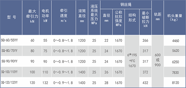 3、 “液壓調(diào)速無(wú)極繩”參數(shù)