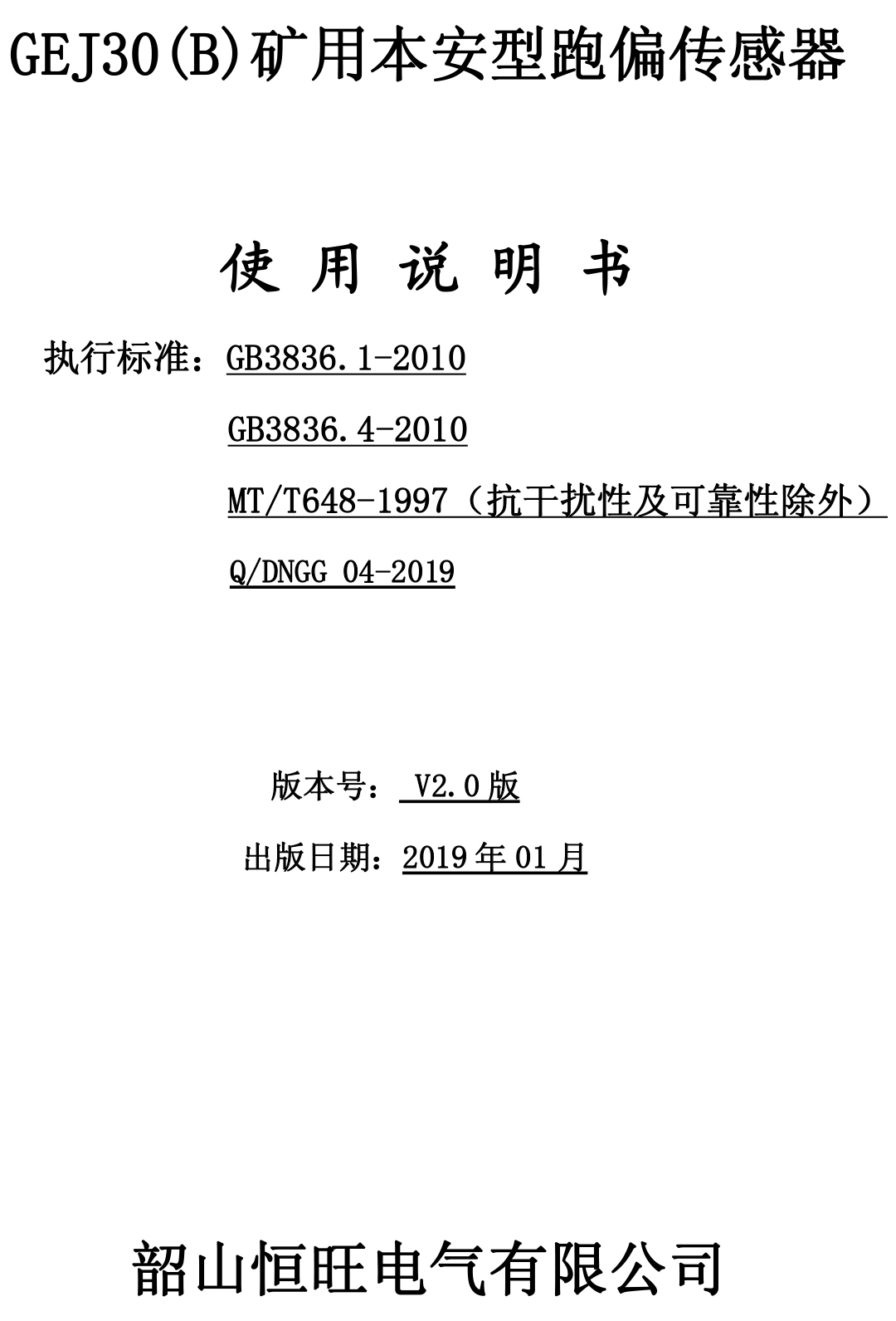 xiao12666@163.comGEJ30(B)礦用本安型跑偏傳感器說明書