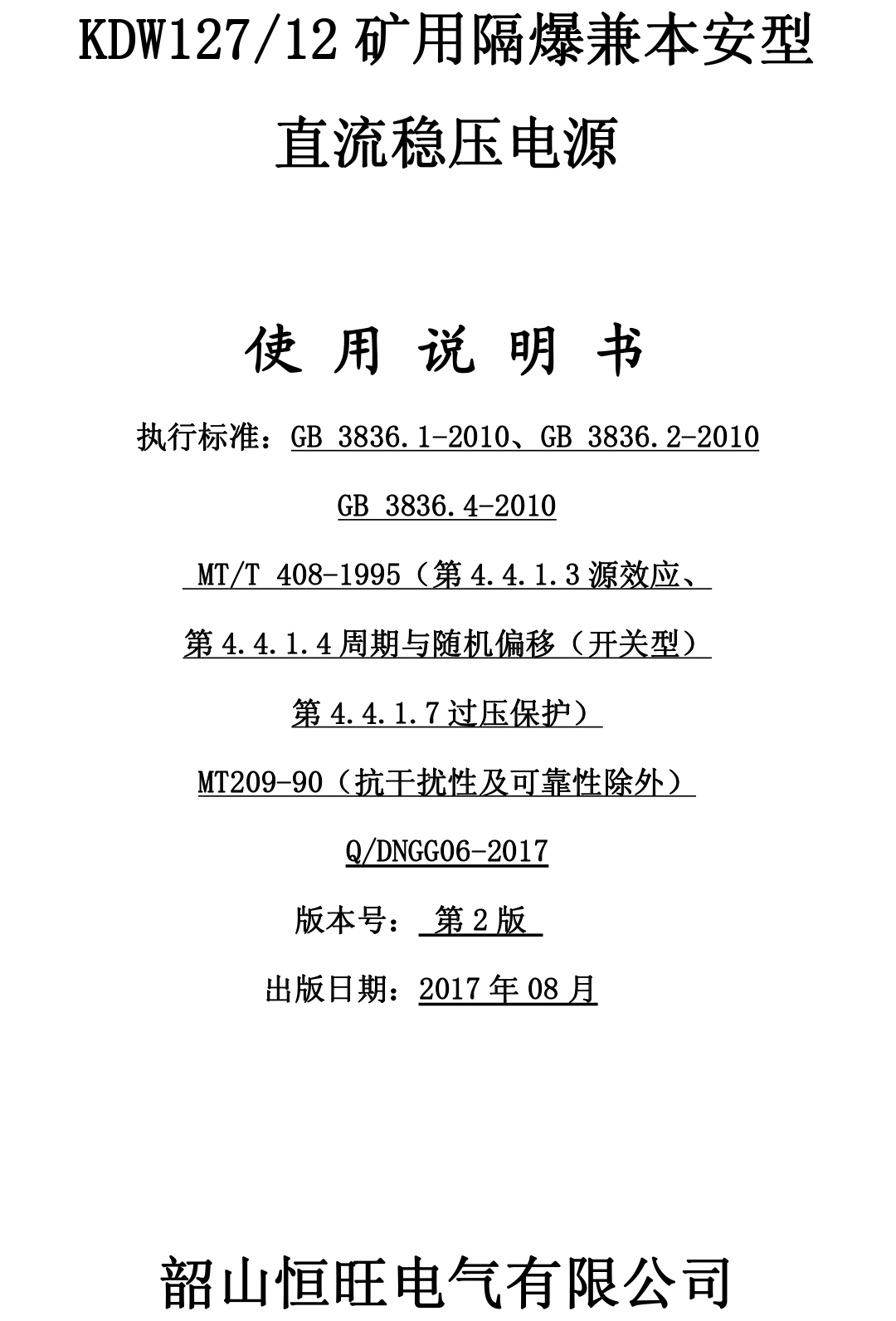 xiao12666@163.comKDW127-12礦用隔爆兼本安型直流穩(wěn)壓電源說明書