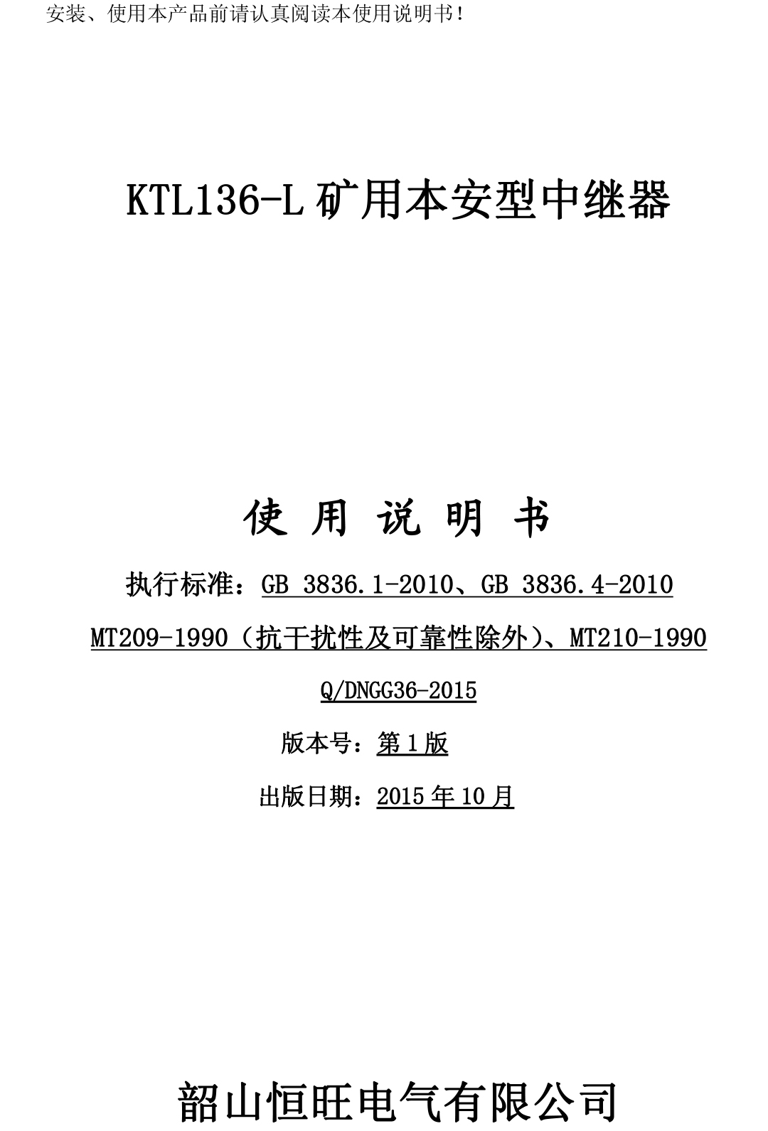xiao12666@163.comKTL136-L礦用本安型中繼器說明書