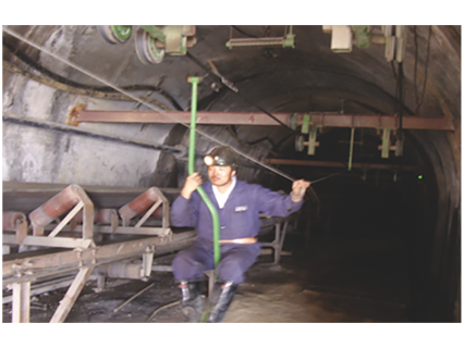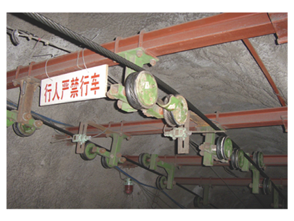 在架空乘人裝置運行的沿途中,全巷道內(nèi)設(shè)置突發(fā)事件的緊急停車裝置,并分區(qū)段編號報警,以確保乘人安全。同時也可作為架空乘人裝置調(diào)試和檢修時的開停裝置。