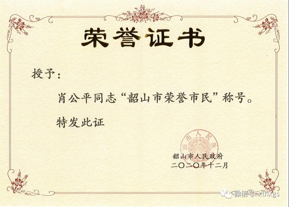 xiao12666@163.com【湘潭恒欣】董事長肖公平獲評“韶山市榮譽市民”