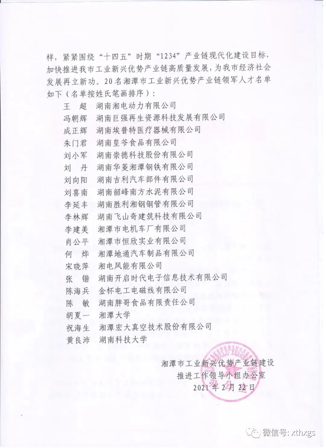 熱烈慶祝【湘潭恒欣】董事長肖公平被評為湘潭市工業(yè)新興優(yōu)勢產(chǎn)業(yè)鏈領(lǐng)軍人才。