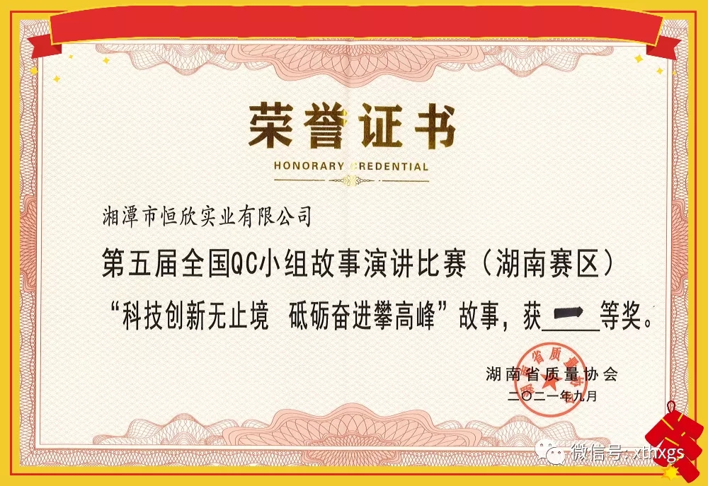 【湘潭恒欣】榮獲第五屆全國QC小組故事演講比賽湖南賽區(qū)一等獎