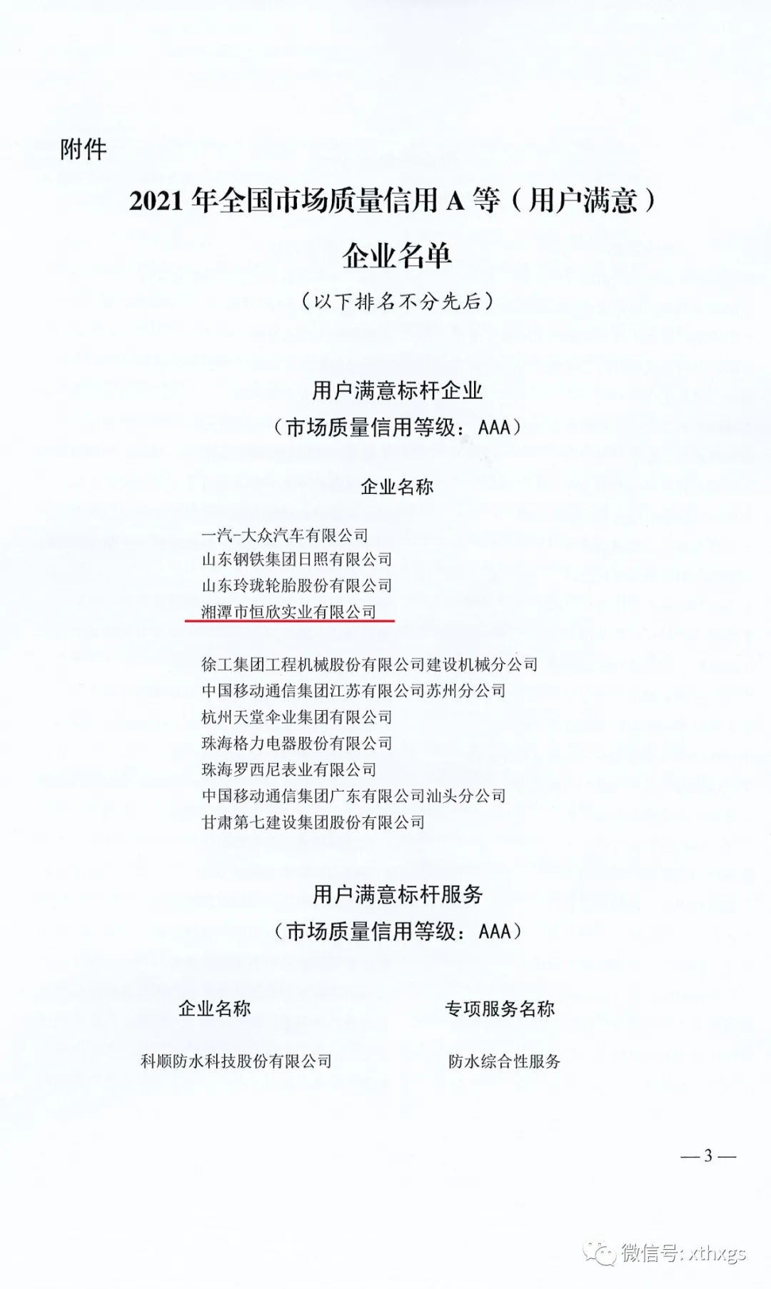 【湘潭恒欣】獲評用戶滿意標桿企業(yè)