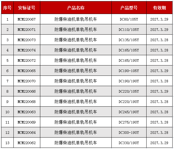 xiao12666@163.com【湘潭恒欣】再獲13個(gè)防爆柴油機(jī)單軌吊機(jī)車安標(biāo)證