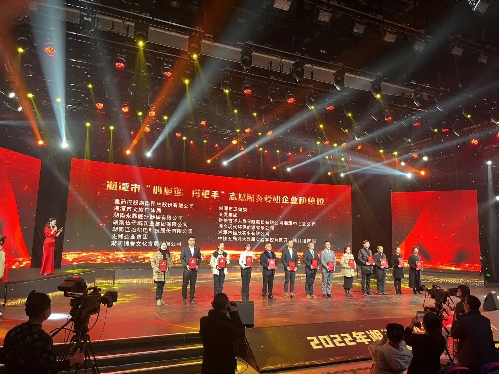 12月9日下午,由湘潭市文明委、市志工委主辦,市委宣傳部(市文明辦)、市志工辦承辦的2022年湘潭市“心相蓮·搭把手”志愿服務(wù)展示交流活動在湘潭市廣播電視臺演播廳舉行。市委書記、市文明委主任劉志仁出席活動并講話。【恒欣股份】被授予"湘潭市志愿服務(wù)愛心單位",公司總經(jīng)理肖薇受邀參加了此次活動并代表公司接受表彰。