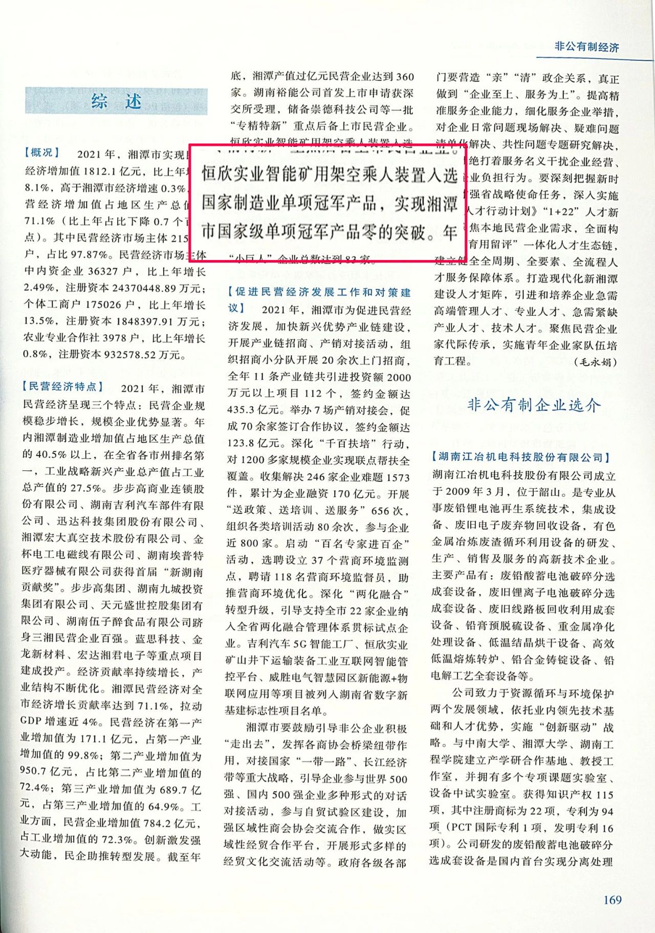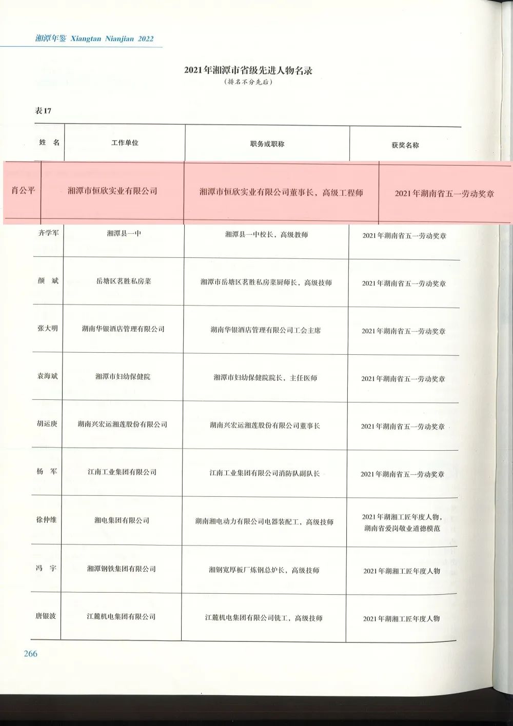 2022年出版的《湘潭年鑒》多個章節(jié)收錄了【恒欣股份】在科學(xué)技術(shù)、經(jīng)濟(jì)發(fā)展等方面取得的成績,董事長肖公平榮獲2021年湖南省五一勞動獎?wù)卤?/span>收錄在《湘潭年鑒》"2021年湘潭市省級先進(jìn)人物名錄“中。