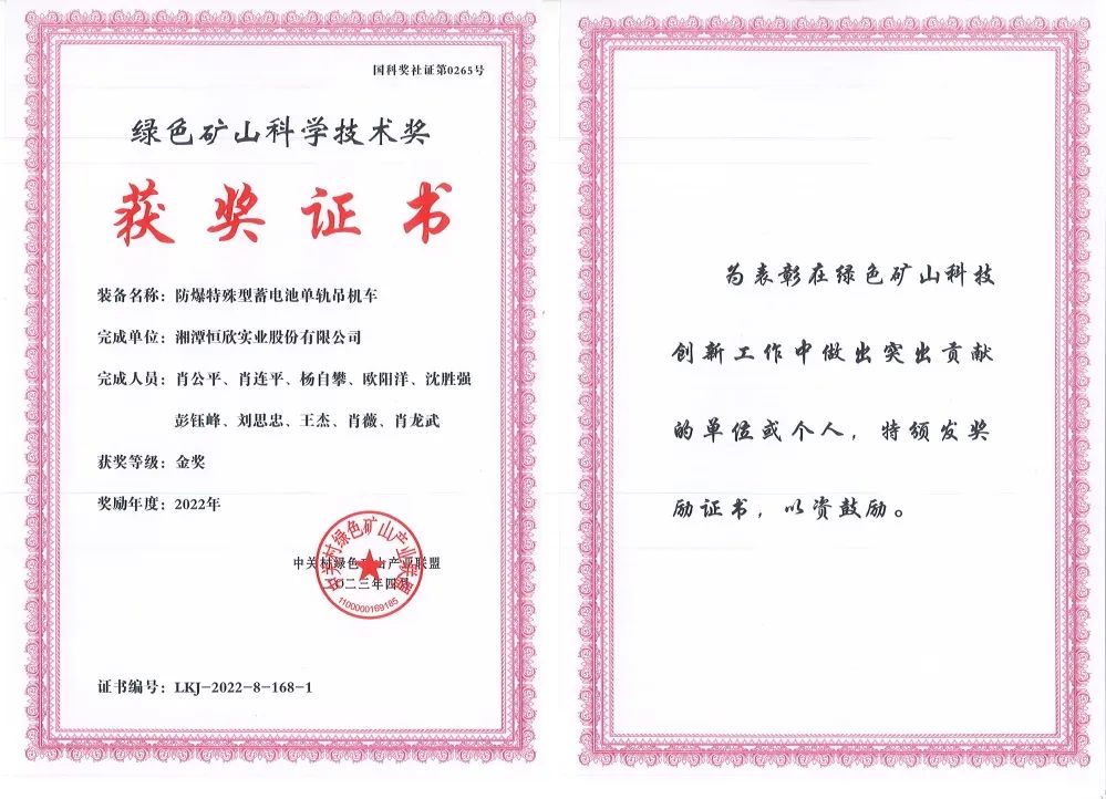 xiao12666@163.com喜訊!【恒欣股份】單軌吊榮獲礦業(yè)裝備質(zhì)量金獎