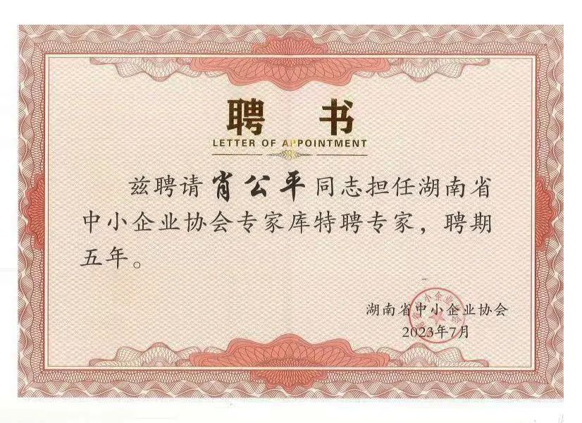 我司董事長被特聘為省中小企業(yè)協(xié)會專家