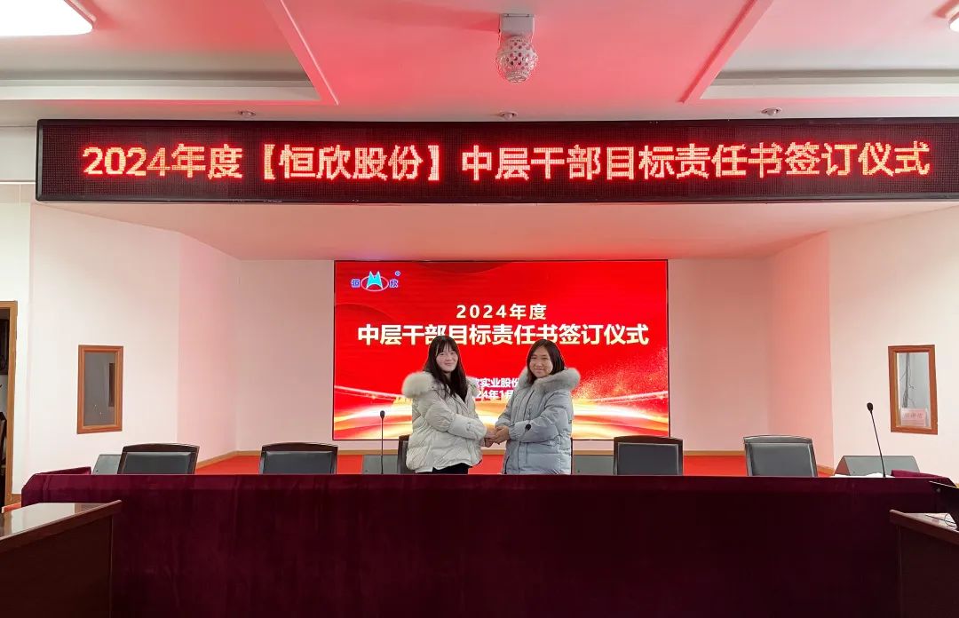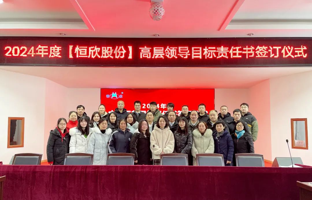 鳴鼓掛帥錨目標,滿弓勁發(fā)啟新程!1月24日下午,【恒欣股份】舉行2024年度目標責任書簽訂儀式。儀式由董事長肖公平主持,副董事長肖連平、總經(jīng)理肖龍武和全體高層領(lǐng)導、中層干部參加了簽訂儀式。