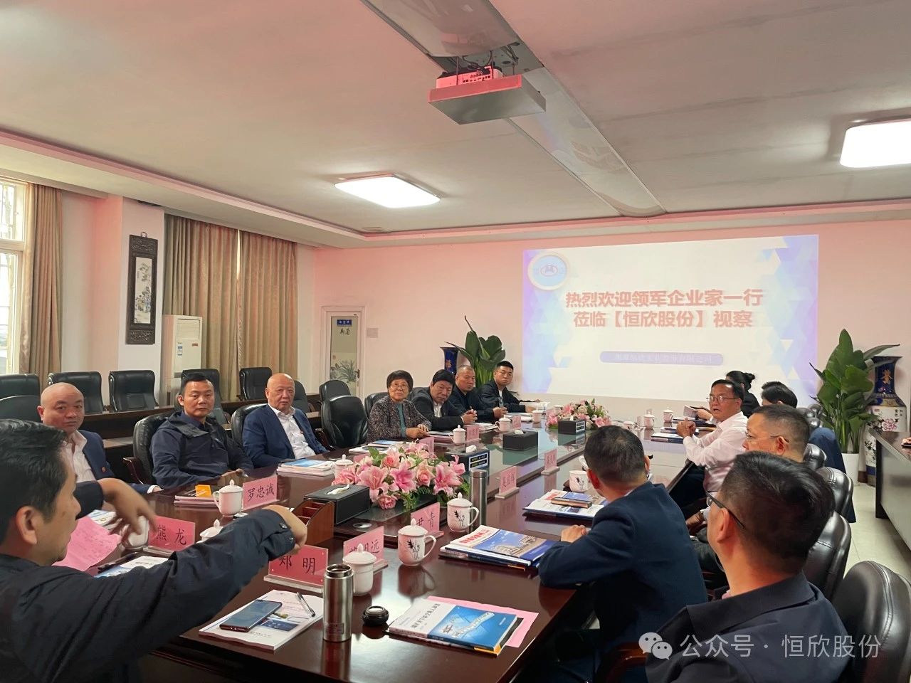 4月13日,來自湖南省內(nèi)14家優(yōu)秀企業(yè)近20位企業(yè)家們蒞臨【恒欣股份】,開展以“互看互學,共同發(fā)展”為主題的管理交流活動?!竞阈拦煞荨慷麻L肖公平、副董事長肖連平、總經(jīng)理肖龍武共同接待了湖南領(lǐng)軍企業(yè)家一行。