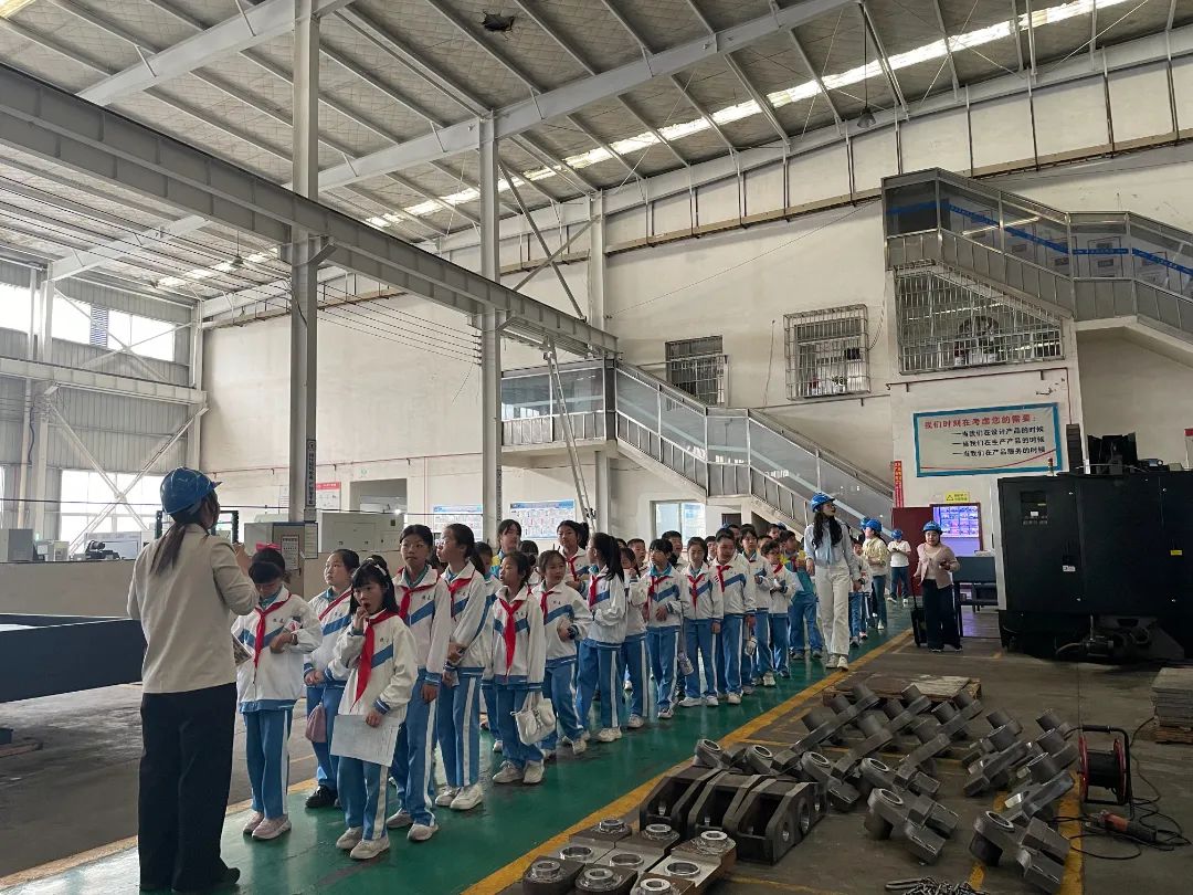 在段總監(jiān)的陪同下,師生們依次參觀了企業(yè)榮譽(yù)展廳、數(shù)控車間、焊接機(jī)器人作業(yè)區(qū)、單軌吊無人駕駛區(qū)及物聯(lián)網(wǎng)中心,段總監(jiān)全程耐心講解,讓孩子們近距離觀察核心產(chǎn)品的生產(chǎn)過程,在焊接機(jī)器人工作區(qū),智能機(jī)械臂的精準(zhǔn)焊接令孩子們驚嘆不已;在單軌吊實(shí)驗(yàn)區(qū),工作人員現(xiàn)場(chǎng)演示無人駕駛技術(shù),讓孩子們直觀感受到科技的力量。