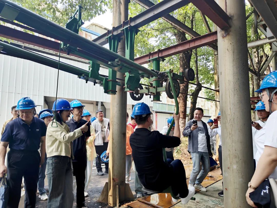 在顧總監(jiān)的引導(dǎo)下,考察團(tuán)先后參觀了企業(yè)榮譽展廳、數(shù)控車間、機(jī)器人焊接車間及無人駕駛技術(shù)展示區(qū)等重點區(qū)域。在單軌吊無人駕駛試驗區(qū),考察團(tuán)成員駐足觀看設(shè)備運行演示,對產(chǎn)品的智能無人駕駛技術(shù)表現(xiàn)出濃厚興趣。顧總監(jiān)詳細(xì)介紹了單軌吊的產(chǎn)品型號分類、驅(qū)動系統(tǒng)及搭載的AI攝像頭等技術(shù)優(yōu)勢,并結(jié)合實際案例分享了該產(chǎn)品在礦山領(lǐng)域的應(yīng)用成果。并在無人駕駛運行監(jiān)控中心通過現(xiàn)場專業(yè)人員的操作,監(jiān)控屏幕實時顯示單軌吊無人駕駛運行情況,考察團(tuán)一行對無人駕駛技術(shù)給予了高度評價,對單軌吊的適用范圍廣、靈活性強、運輸效率高、安全可靠等優(yōu)勢贊不絕口。隨后,在猴車試驗區(qū)域,考察團(tuán)成員興致勃勃地乘坐"猴車"進(jìn)行體驗,通過親身體驗,大家對該設(shè)備簡便的操作方式和穩(wěn)定的運行性能給予了充分肯定。