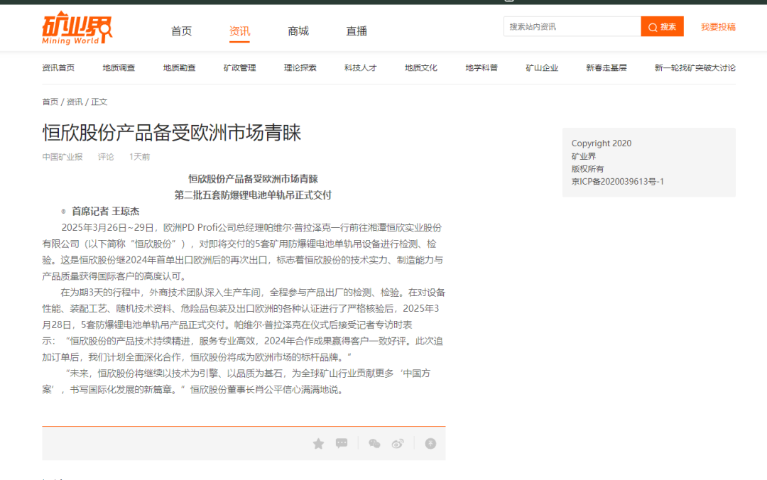 【礦業(yè)界】報道