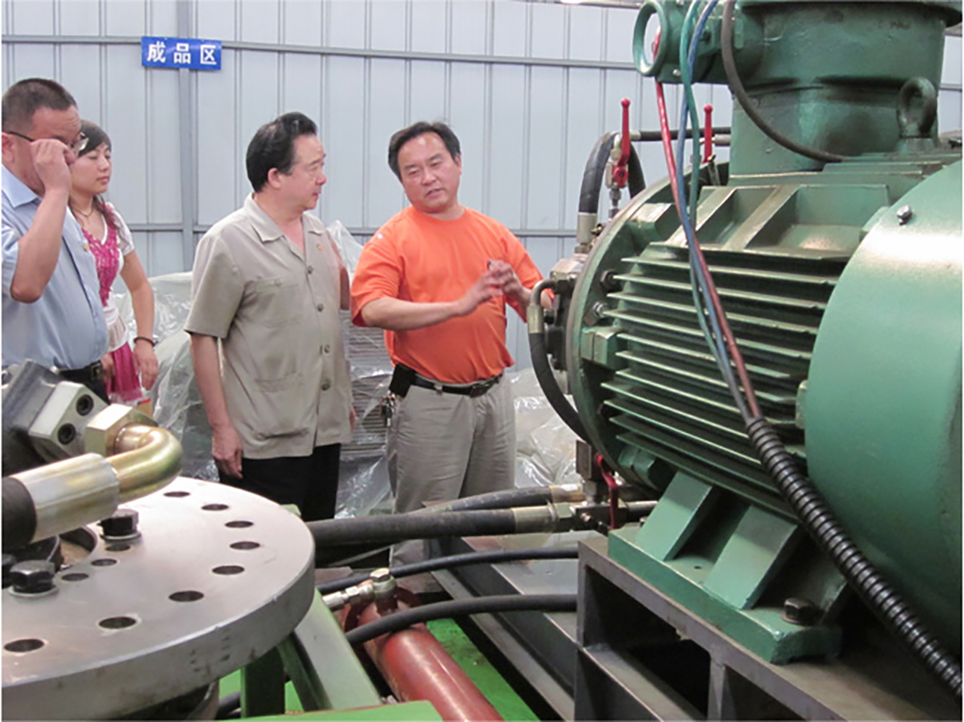 公司董事長肖公平為會長張維新先生及各位領(lǐng)導講解公司發(fā)展歷程、近期發(fā)展計劃。