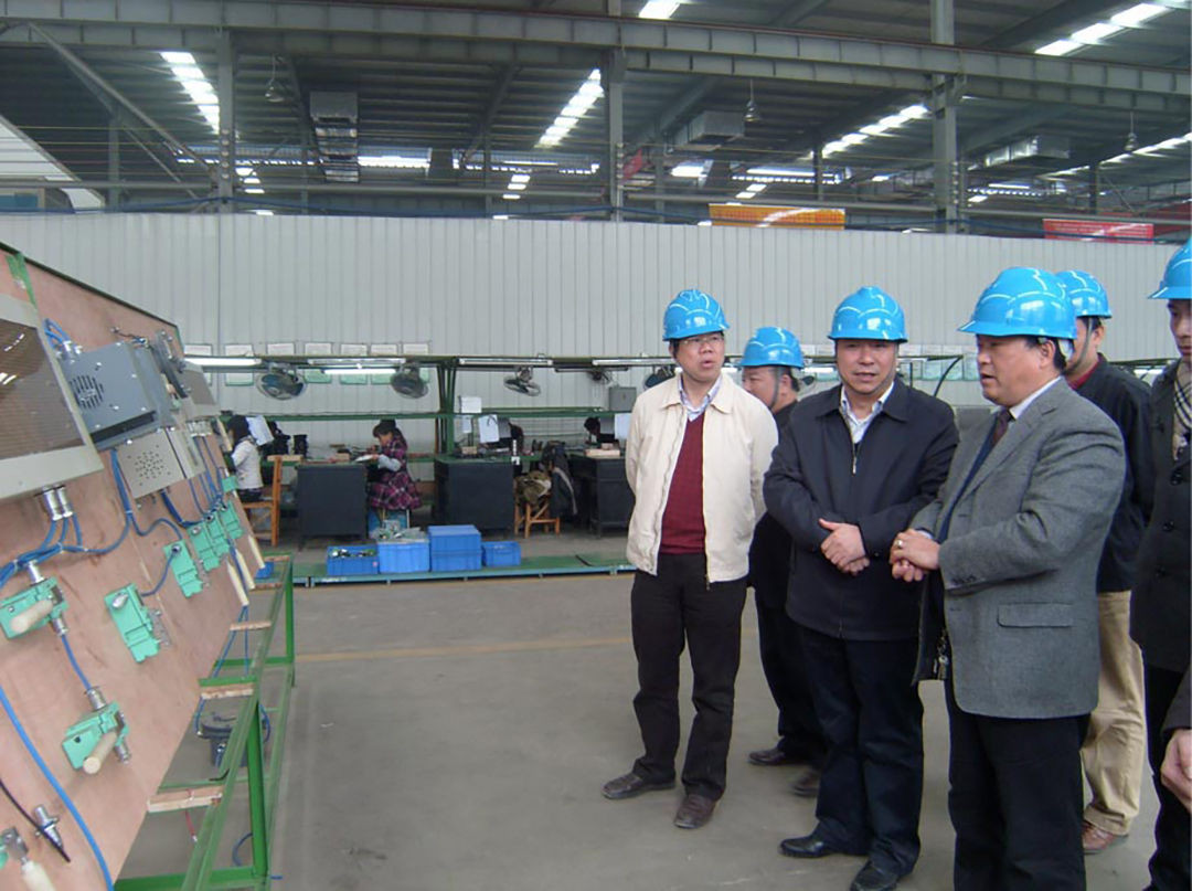 公司董事長(zhǎng)肖公平先生陪同湖南省安監(jiān)局副局長(zhǎng)朱崇洲先生一同視察防爆電氣產(chǎn)品生產(chǎn)車(chē)間。