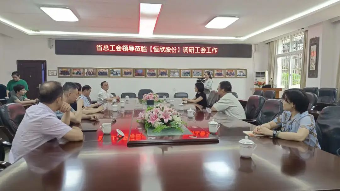 在會議室,肖董事長向劉主席一行介紹了公司工會工作,并陪同劉主席一行重點參觀了公司員工活動中心,并深入活動中心的員工卡拉OK室、健身房、乒乓球室進行視察。通過視察,劉主席對【恒欣股份】工會所作的工作表示肯定,同時,寄希望作為省模范職工之家的【恒欣股份】工會,還需繼續(xù)完善和提升員工陣地規(guī)范化建設(shè)水平,不斷增強員工凝聚力、向心力,增進員工歸屬感,讓員工積極地為企業(yè)發(fā)展助力。