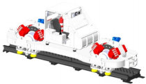 駕駛室由AI路況探測機(jī)器人、駕駛室、駕駛室底架、卡軌裝置等組成。其中駕駛室內(nèi)包含路況顯示屏和工況顯示屏,操控箱等。當(dāng)配置3驅(qū)和4驅(qū)時,另兩驅(qū)動單元安裝在駕駛室底架上,減小機(jī)車長度。