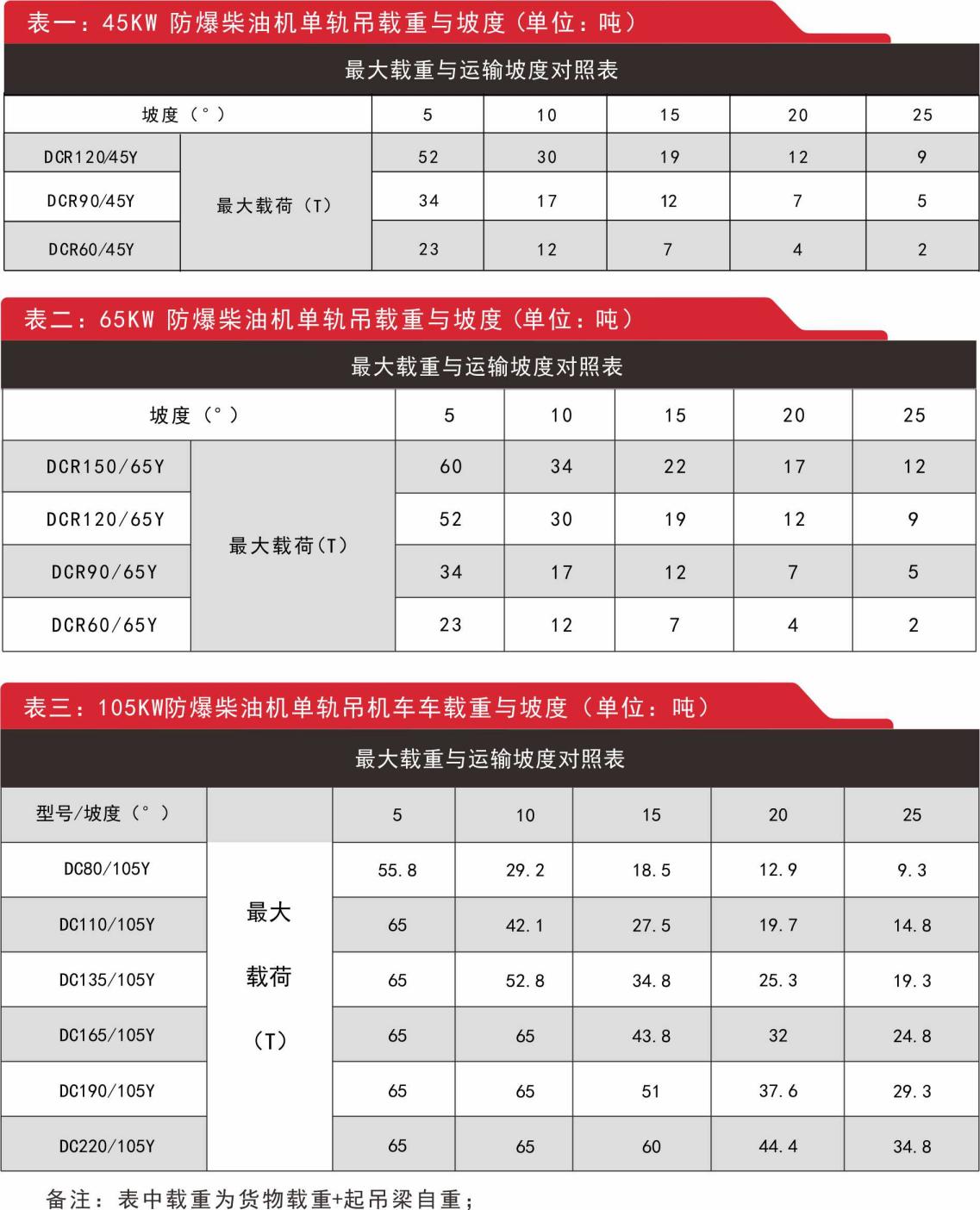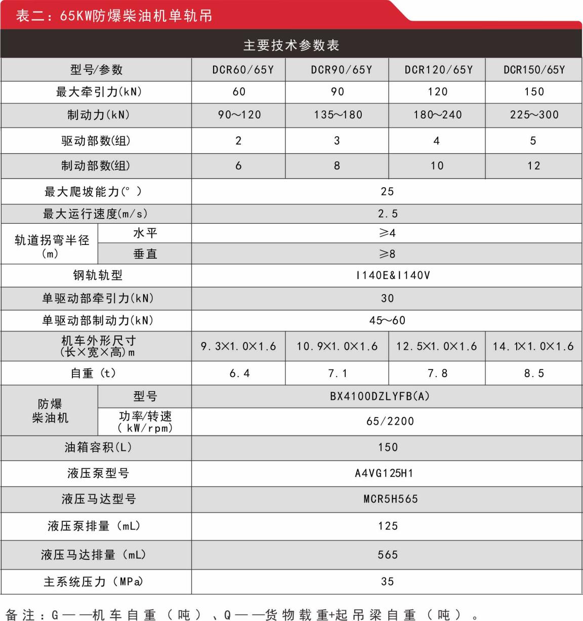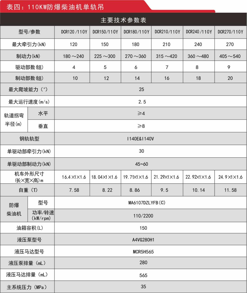 五、防爆柴油機單軌吊參數(shù)(全馬達/半馬達驅(qū)動部)