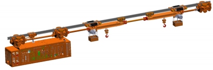 防爆柴油機(jī)調(diào)度單軌吊機(jī)車主要由驅(qū)動(dòng)部 、 柴油機(jī)主機(jī) 、速度保護(hù)小車 、承載小車 、拉桿 、起吊梁等組成。