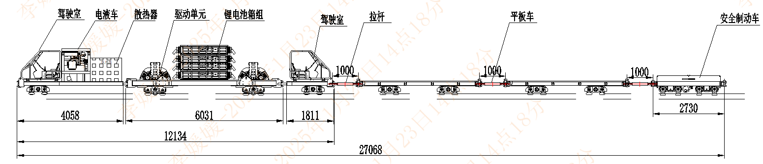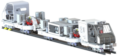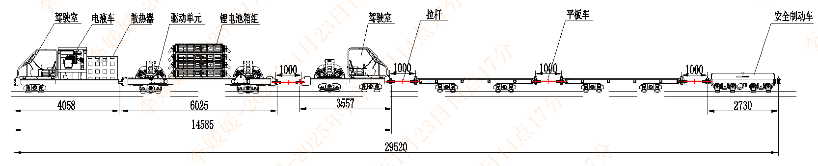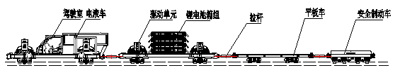 由3箱鋰離子蓄電池電源+兩個驅(qū)動單元組合 ,為齒軌卡軌車的基礎(chǔ)組成部分之一。