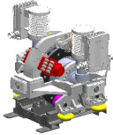 主要 由變頻調(diào)速一體機(jī) 、行星減速機(jī) 、工作制動(dòng)器(配備減速機(jī)內(nèi)置濕式制動(dòng)器及作用在驅(qū)動(dòng)輪 的盤(pán)式制動(dòng)器)、驅(qū)動(dòng)輪 、編碼器測(cè)速裝置 、離心限速裝置 、驅(qū)動(dòng)支架 、車(chē)輪擺架 、卡軌輪 、導(dǎo)向輪等組成 , 單個(gè)驅(qū) 動(dòng) 單 元 的驅(qū) 動(dòng) 力 :22 kW變頻 調(diào)速 一體機(jī) 的牽 引力 為60kN,45kW變頻調(diào)速一體機(jī)的牽 引力為135kN。