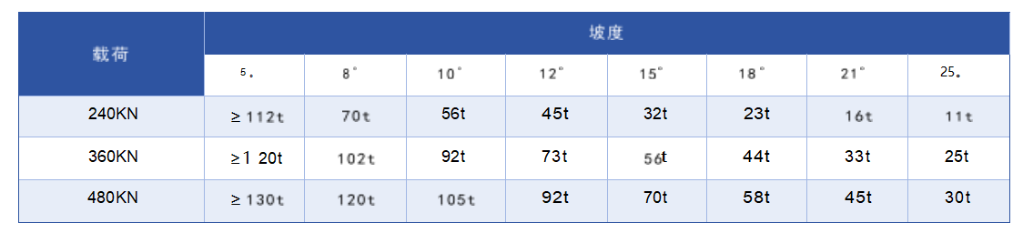 防爆特殊型鉛酸蓄電池齒軌卡軌車(chē)(永磁變頻一體機(jī))負(fù)載對(duì)照表(單位:t)