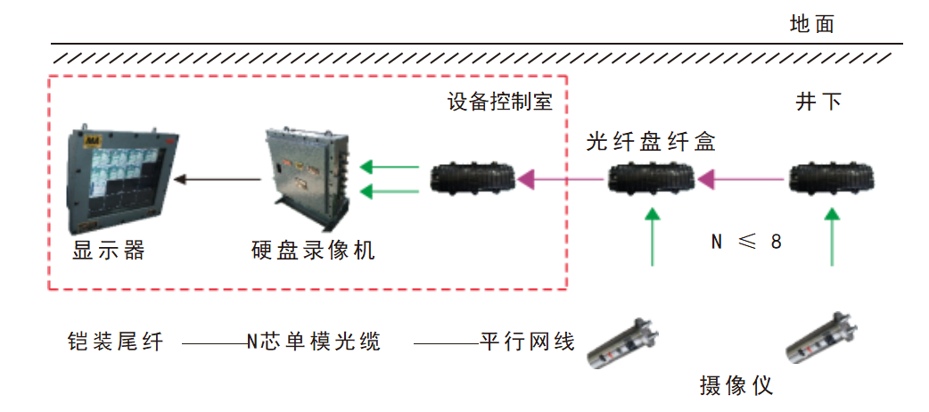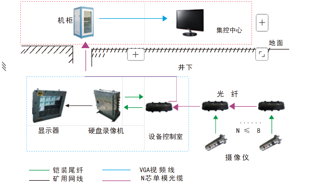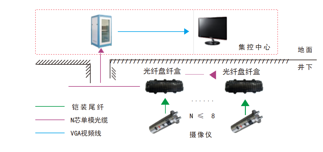 ◆ 地面至井下分站:采用礦用單模光纜最遠(yuǎn)傳輸距離為20km;