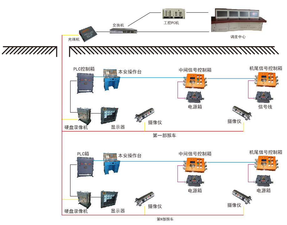 在調(diào)度集控中心和井下設(shè)備控制室對監(jiān)視點的設(shè)備運行和人員操作情況同步進(jìn)行實時監(jiān)視。