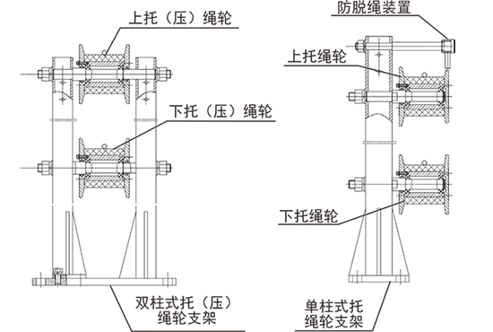 無(wú)極繩絞車(chē)帶動(dòng)鋼絲繩無(wú)極循環(huán)運(yùn)行,行人將卡繩棒卡住上山運(yùn)行的鋼絲繩,并由上山運(yùn)行的鋼絲繩將人拖動(dòng)向上助力上坡,