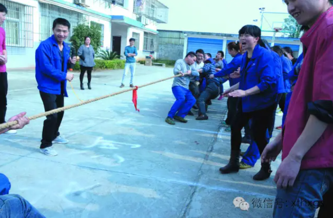 隨著一聲響亮的哨聲劃破天際,第一個(gè)比賽項(xiàng)目拔河比賽開始了,只見兩邊參賽隊(duì)員們迅速調(diào)整好自己的隊(duì)形,雙手緊緊的握住麻繩,使出全身力氣往自己的方向拽繩子,雙方隊(duì)員們一個(gè)個(gè)臉都憋得通紅。一旁的拉拉隊(duì)員熱情的高喊著“1、2加油!1、2加油!”聲音震耳欲聾、此起彼伏。經(jīng)過幾輪的角逐,最后“機(jī)加班組”獲得了本次拔河比賽的冠軍。